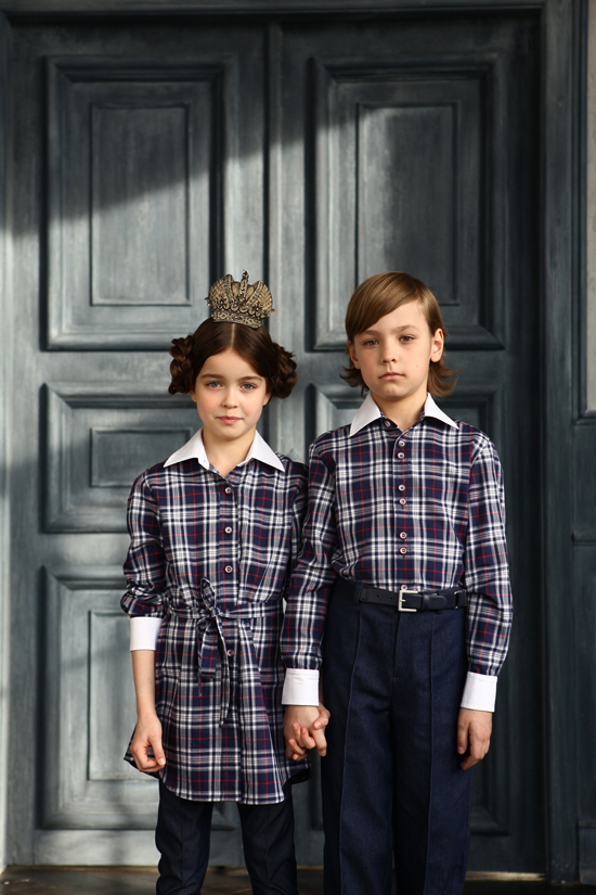 Арт.51.1314 Рубашка из синего хлопка в клетку с белой отделкой Рост 98-164 990 руб.